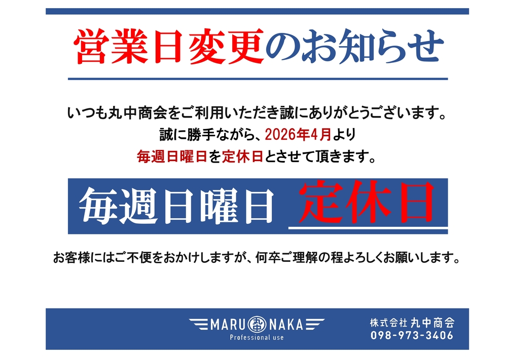 2026年2月7日(土)・2月8日(日)社内行事に伴う臨時休業・営業時間変更のお知らせ