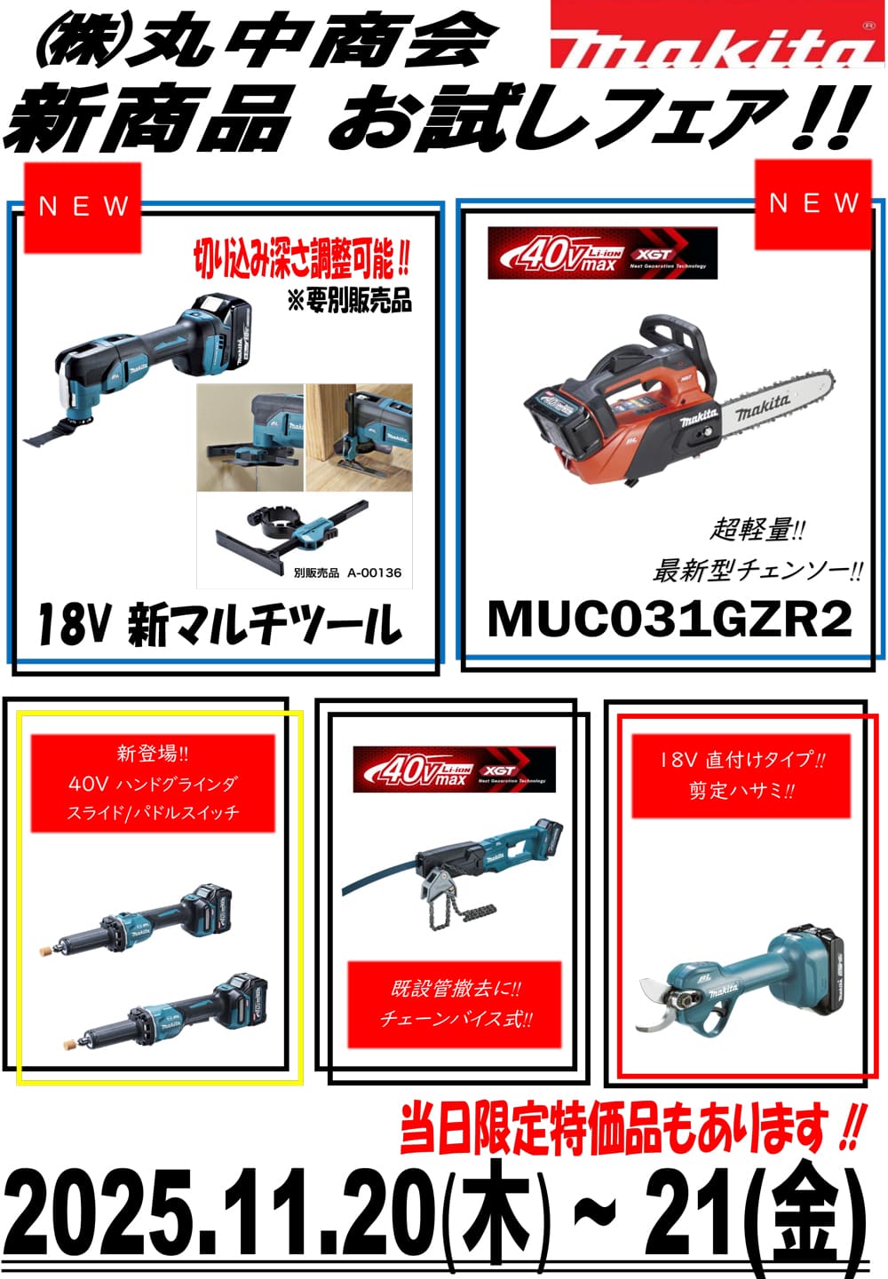 2025年11月20日(木)・21日(金) 丸中商会新商品お試しフェア!!(makita)