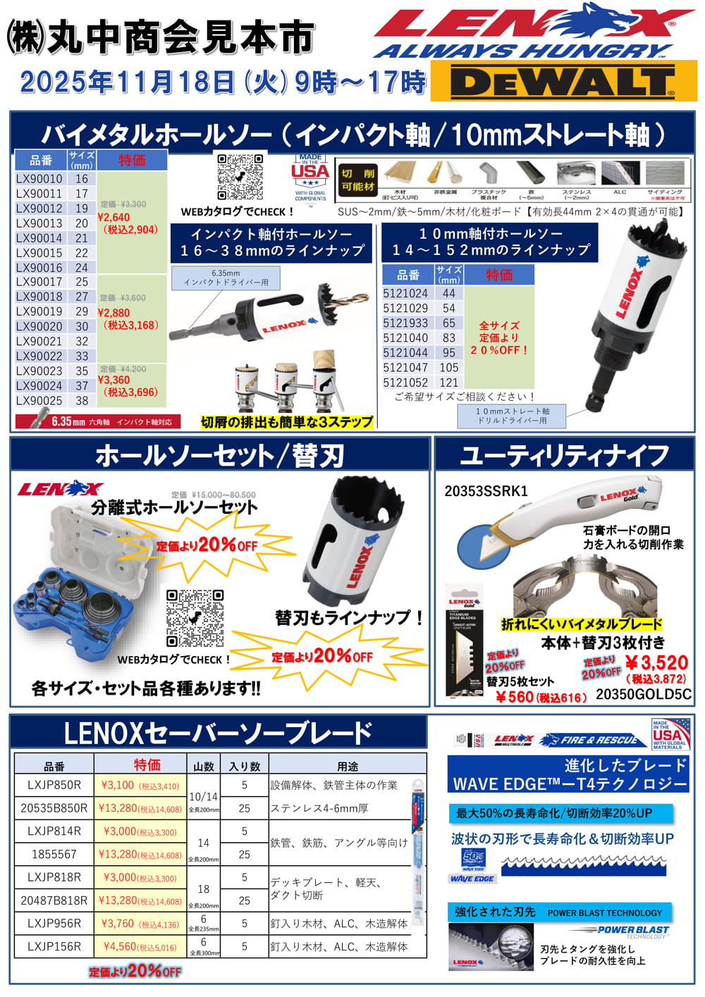 2025年11月18日(火) 丸中商会見本市(LENOX・DeWALT)